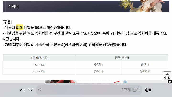 검은사막 모바일 캐릭터 최대레벨과 투력상승