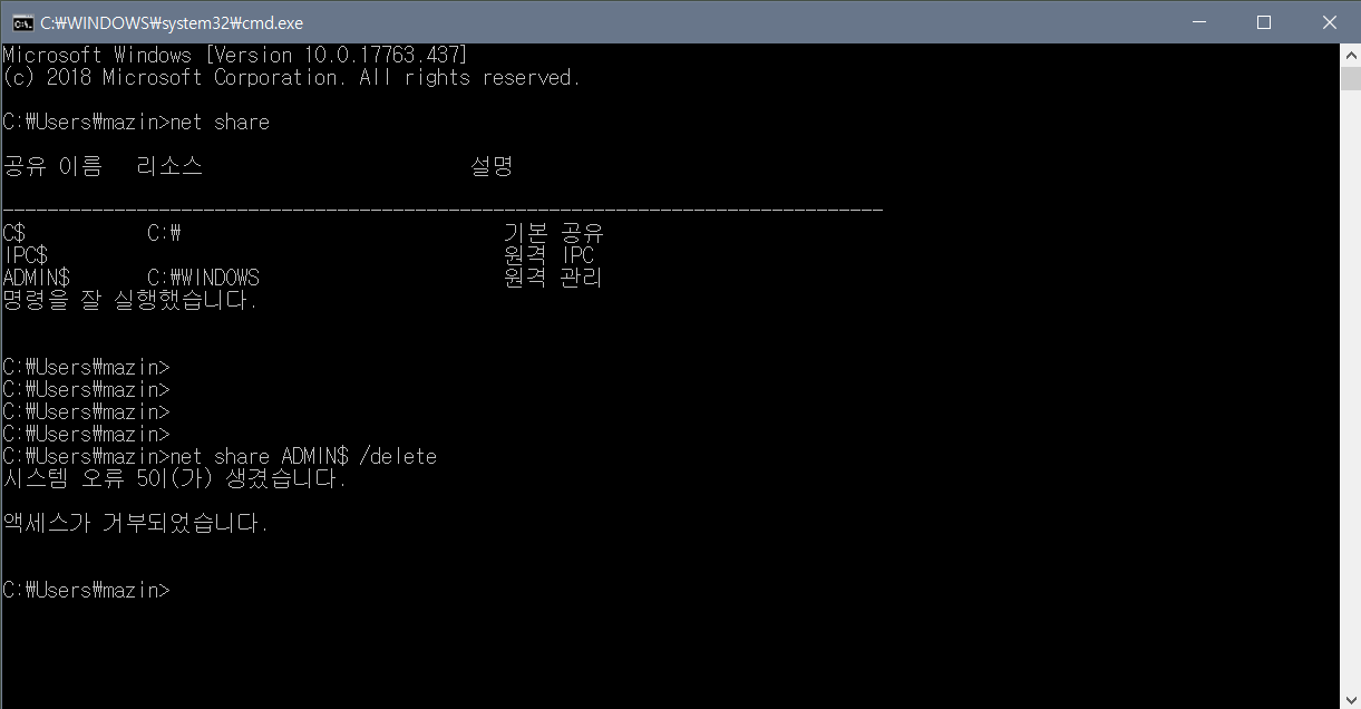 Windows 10 공유폴더 쉽게 삭제하기 Feat Cmd 행씨네