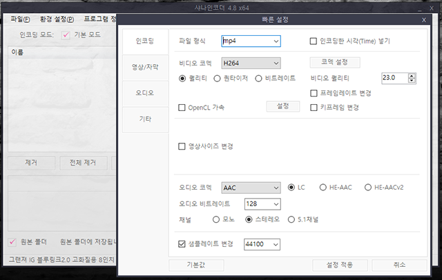 샤나인코더 Shanaencoder H264 소장용 고화질 인코딩 설정 프리셋 지원 네이버 블로그