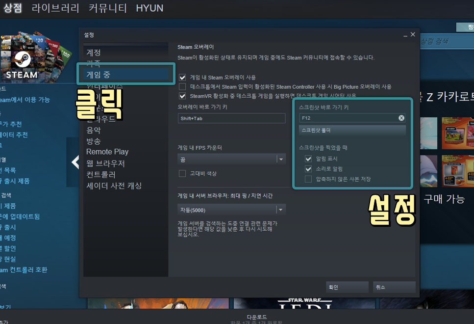 스팀 게임 Steam 스크린 캡쳐 하는 방법