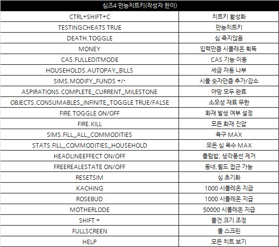 심즈 4 치트키 모음 2 심즈 마법 치트키 심즈 뱀파이어 치트키