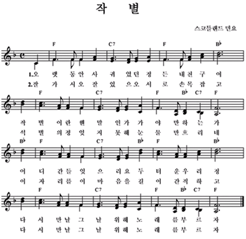 작별 석별의 정 Auld Lang Syne 올드랭 사인 악보 및 가사