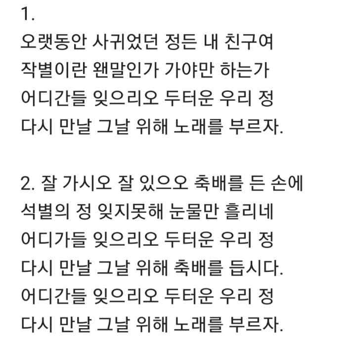 오랫동안 사귀었던 정든 내 친구여 노래