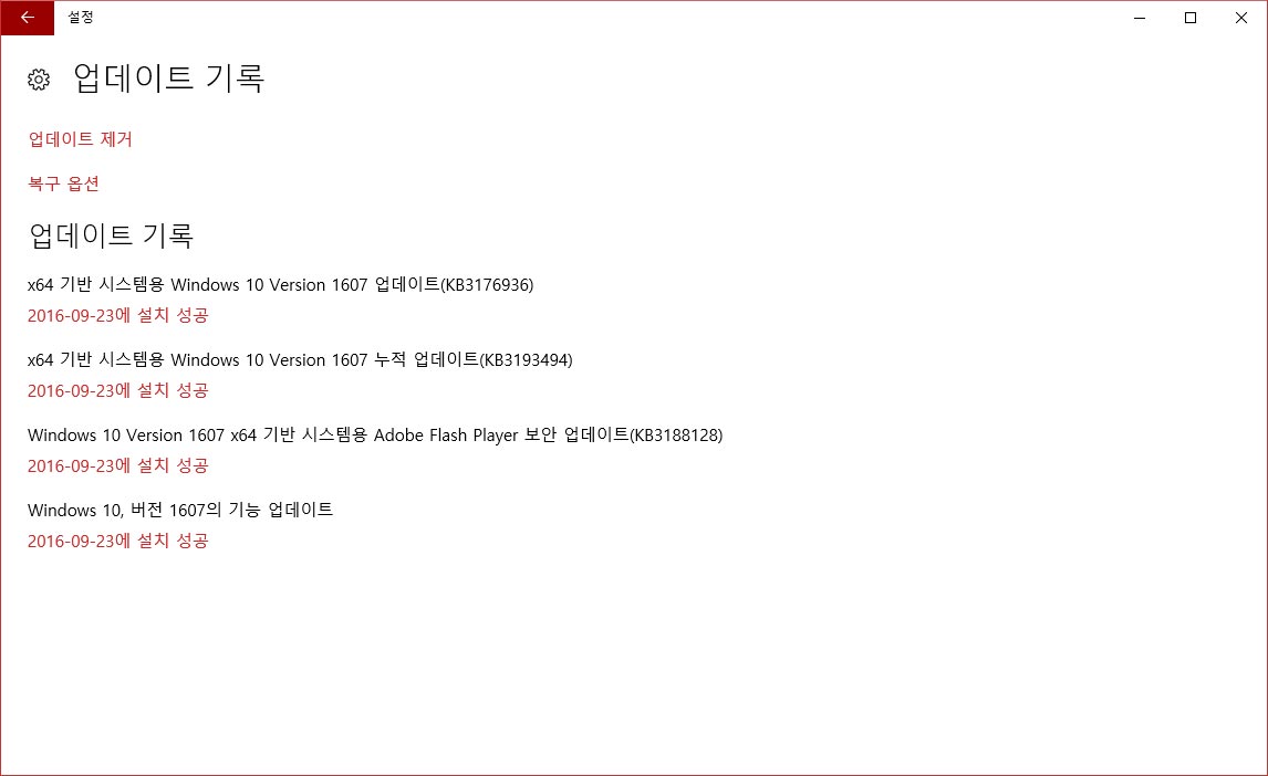 윈도우 10 설치된 업데이트 제거 방법