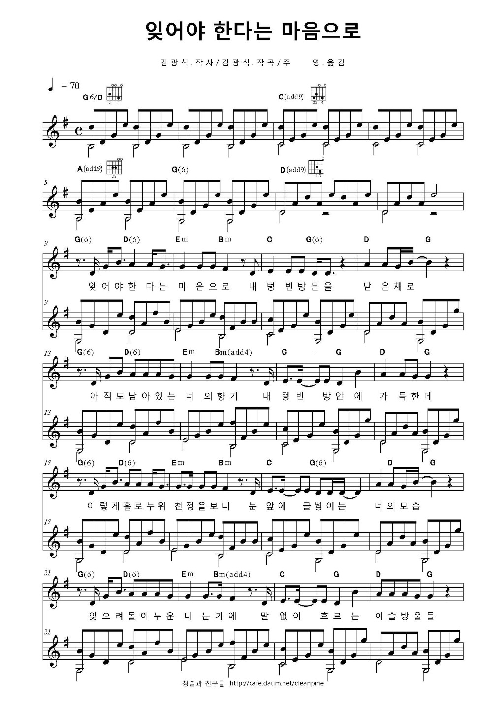 악보세상 김광석 잊어야 한다는 마음으로 기타 악보