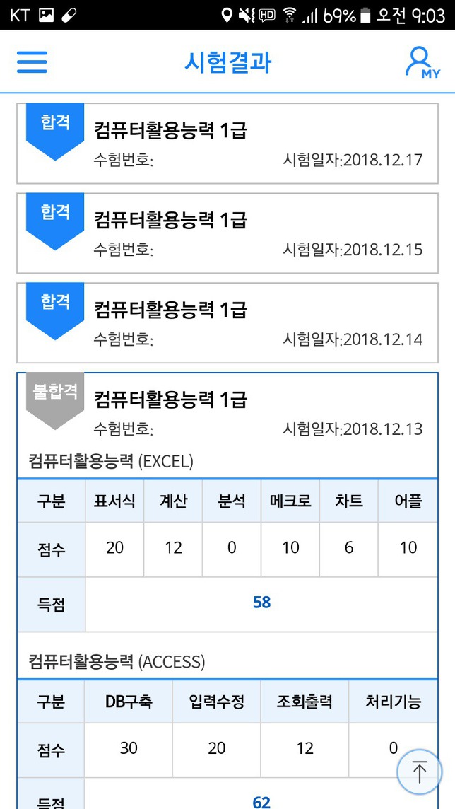 엑셀 66점 액세스 68점으로 너무 아깝게 불합격을 받아버렸네요. 안타깝게도 불합격 글로 바뀌어버렸네요. 공지사항 2020 08 27 코로나19로 인한 상설시험 환불민원에 대한 안내 2020 08 27 코로나19 수험자 안내문 2020 08 26 크롬 브라우저. 합격 발표는 컴활 필기의 경우 필기 응시일 다음날 오전 10시에 컴활 실기의 경우 시험 응시 주간을 제외한 2주차 금요일 9시에.