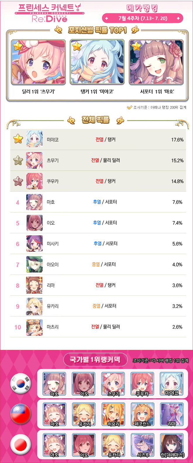 메카 랭킹 프린세스 커넥트 리다이브 7월 2주차 디버프 전문가 미츠키 시선 집중 국민트리