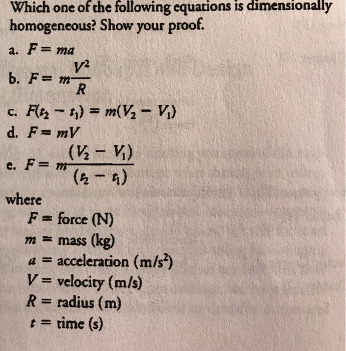Solved Which One Of The Following Equations Is Dimensiona Chegg Com