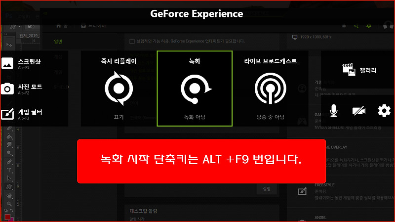 지포스 익스피리언스 녹화 기능 사용